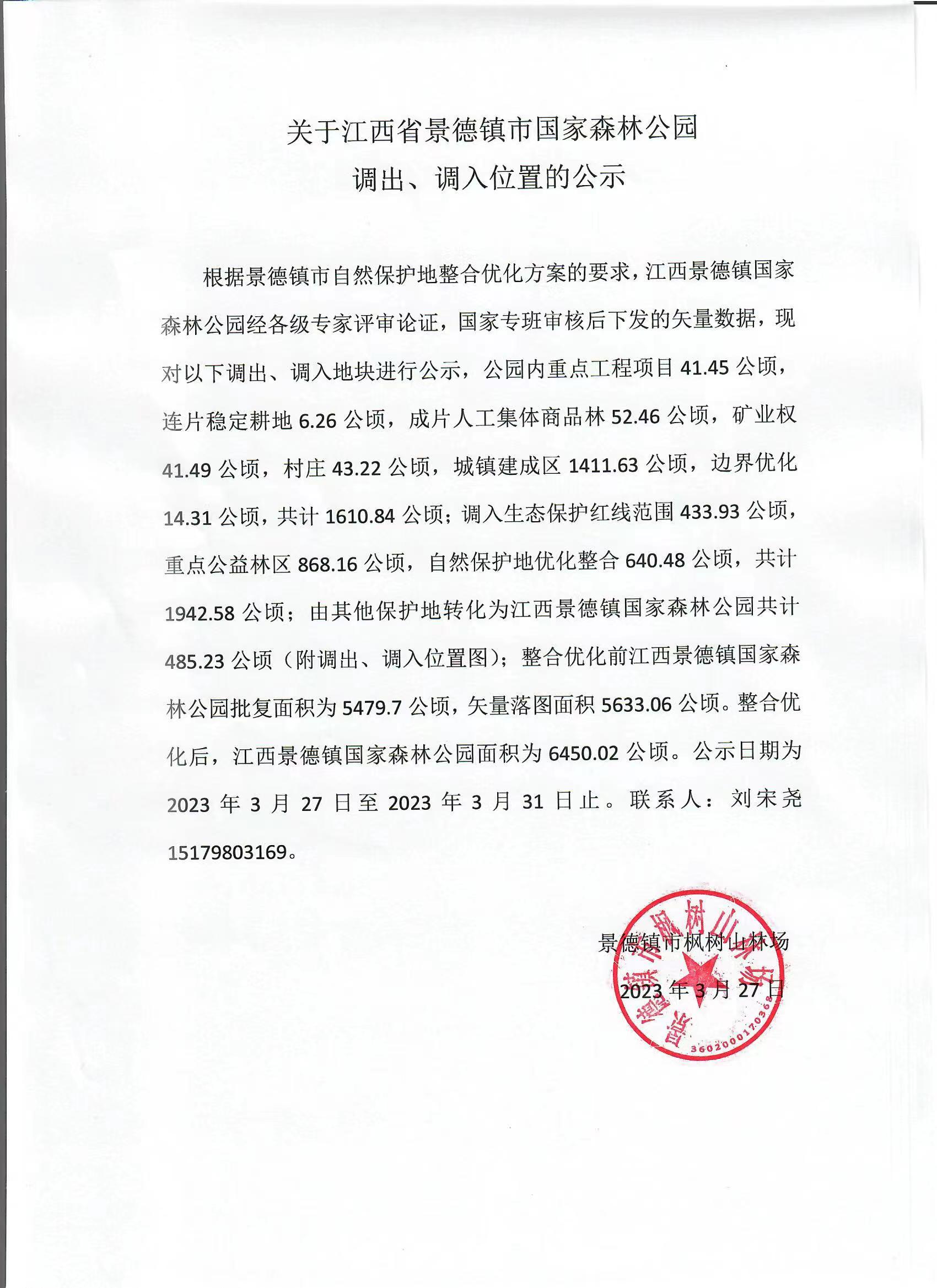 关于江西省景德镇市国家森林公园调入调出图斑的公示