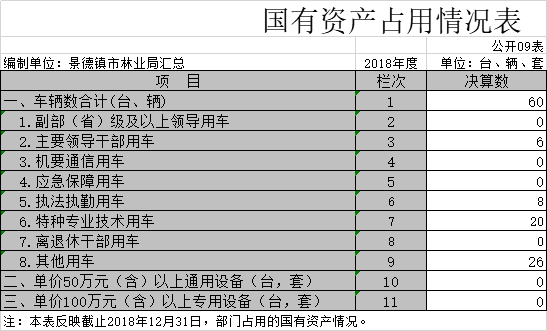 截止2018年12月31日,本部门共有车辆60辆,其中,副部(省)级及以上领导用车0辆、主要领导干部用车6辆、机要通信用车0辆、应急保障用车0辆、执法执勤用车8辆、特种专业技术用车20辆、其他用车26辆;单位价值50万元以上通用设备0台(套);单位价值100万元以上专用设备0台(套)。