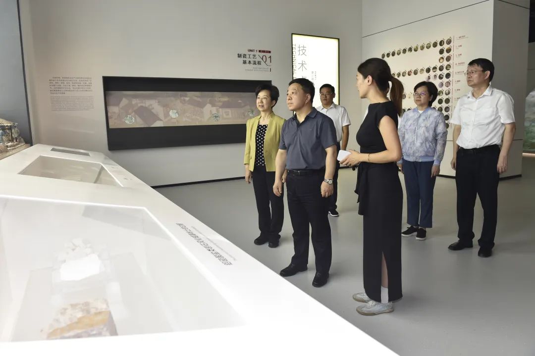 7月23日,省长叶建春在景德镇调研。他强调,要深入贯彻习近平总书记关于文化遗产保护传承的重要论述和考察江西重要讲话精神,深刻理解景德镇陶瓷文化的厚重内涵与辉煌历程,用心守护陶瓷文化遗产,做好陶瓷文化遗产的诠释展示工作,讲述好景德镇以瓷为媒走向世界的文化特质,全面展现千年瓷都风采。