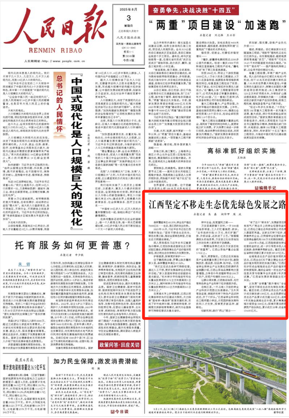 2023年10月,习近平总书记在江西考察时指出:“坚定不移走生态优先、绿色发展之路,推动全面绿色转型,打造生态文明建设高地。”