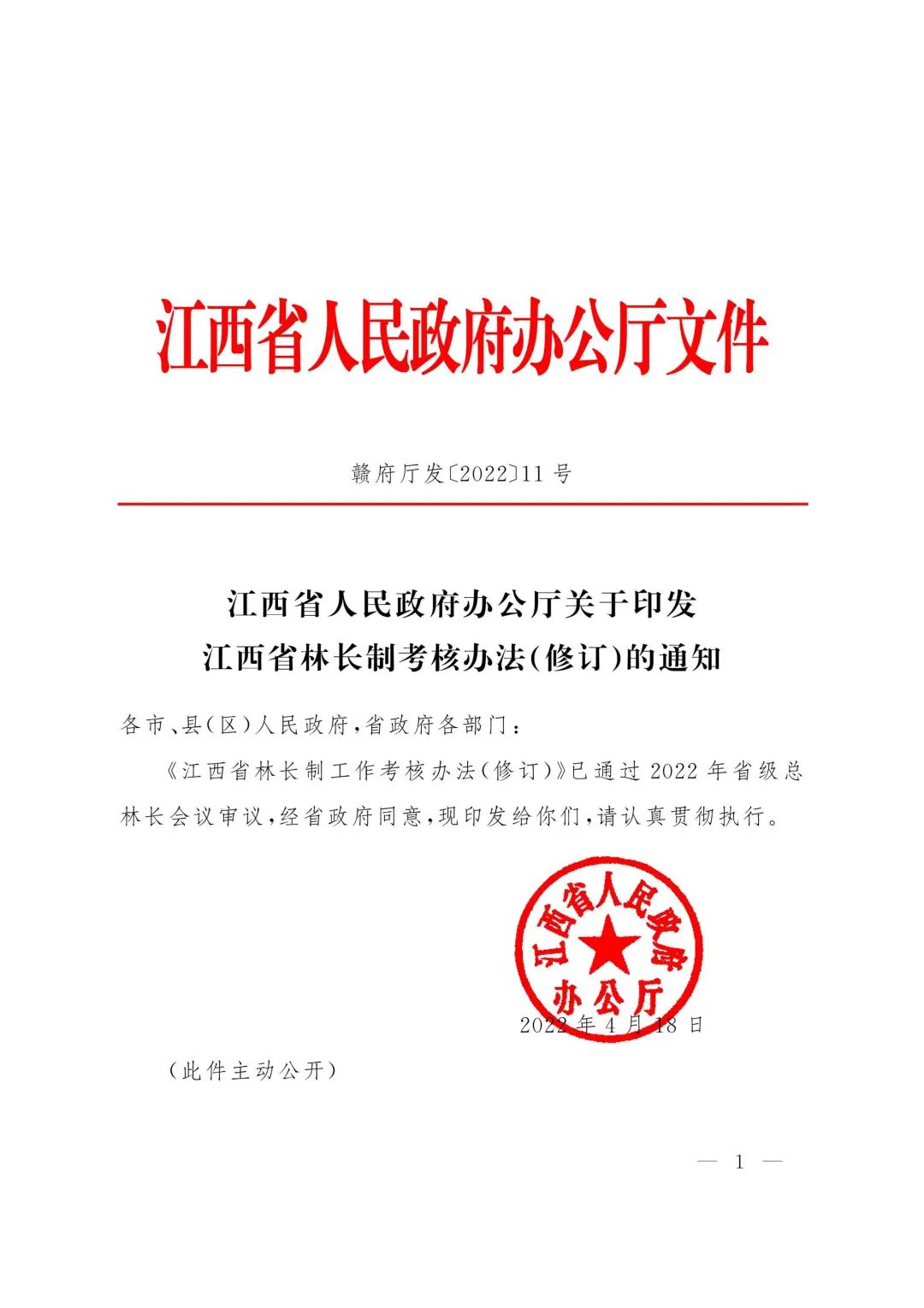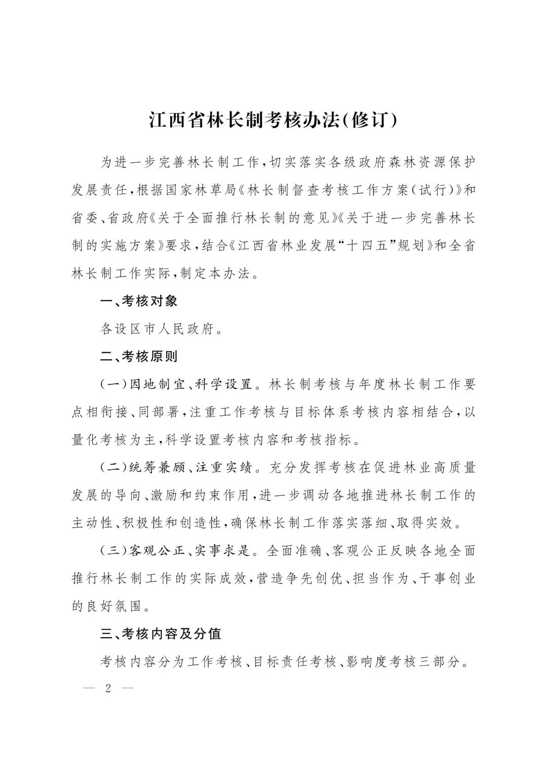 江西省人民政府办公厅关于印发江西省林长制考核办法(修订)的通知